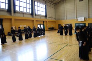 卒業生も在校生も気合十分で、体育館には力強い打ち込みや鋭い踏み込みの音が響き渡りました。